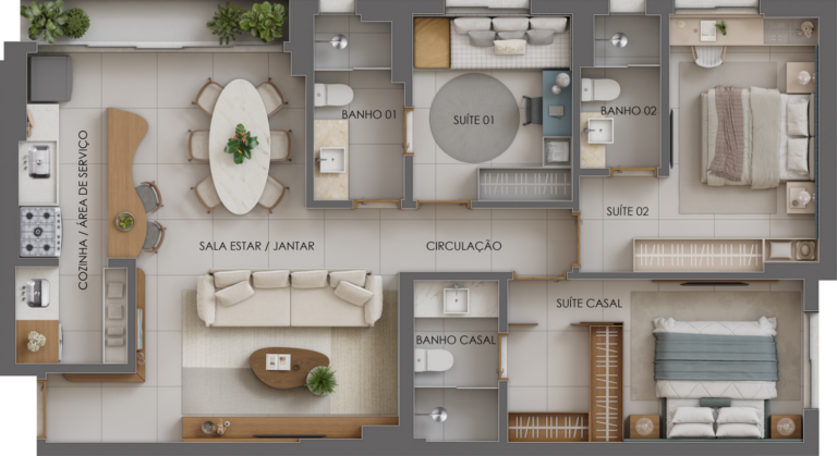 Apartamentos modernos e funcionais, com 2 ou 3 quartos, de 69m² a 140m². Conheça os decorados: